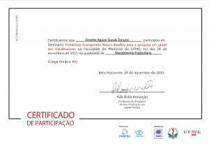 Certificado de participação do 1º Seminário da pesquisa sobre Intergeracionalidade da PUC Minas