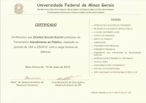 Certificado de treinamento de Atendimento ao Público, UFMG, 2012