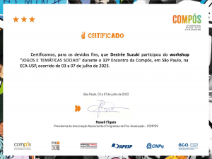 Certificado do Workshop Jogos e Temáticas Sociais da COMPÓS
